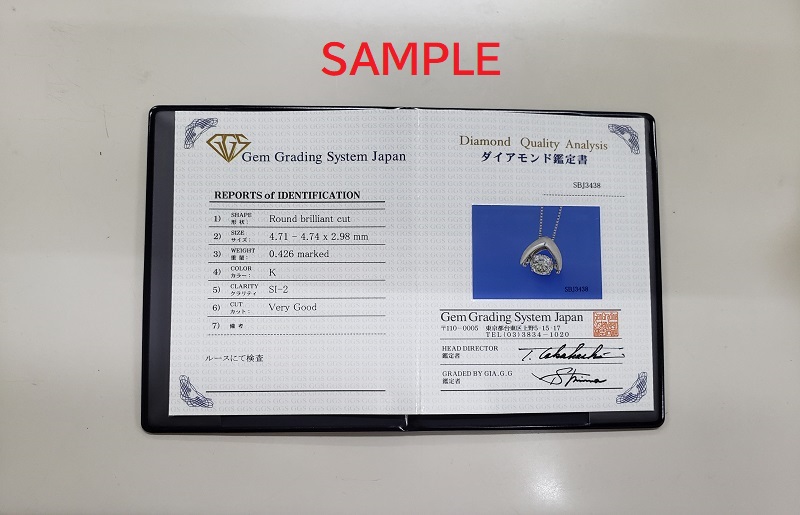 ミニ鑑定書付、ネックレスケース付