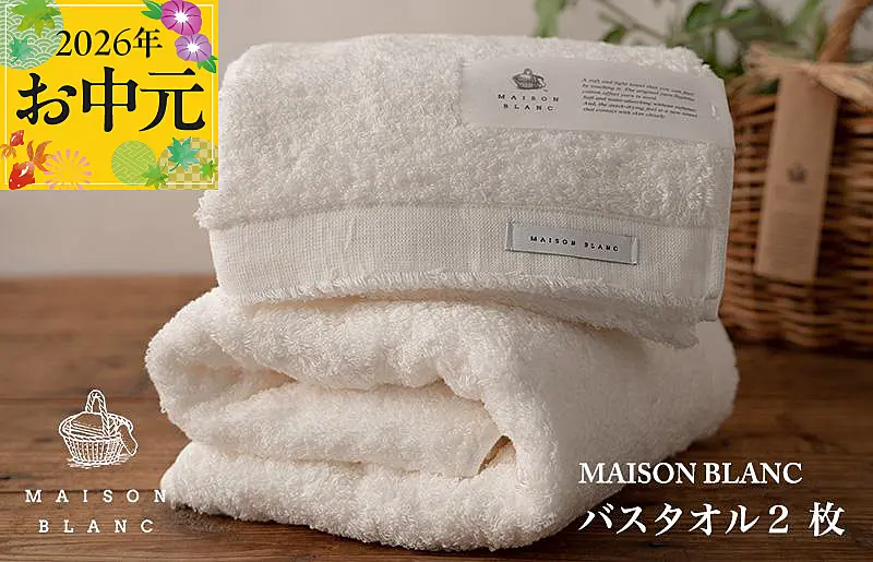 030D185t 【お中元対応】MAISON BLANC バスタオル2枚 ホワイト