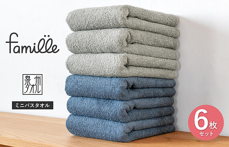 G3787 【スピード発送】ファミーユ ミニバスタオル 6枚セット(ナイトブルー&グレー 各3枚)