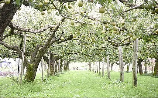 当園のラ・フランスは果実の一つひとつに太陽の光が当たるよう「平棚仕立栽培」で育てているため、大玉で高品質のラ・フランスが生産できます。