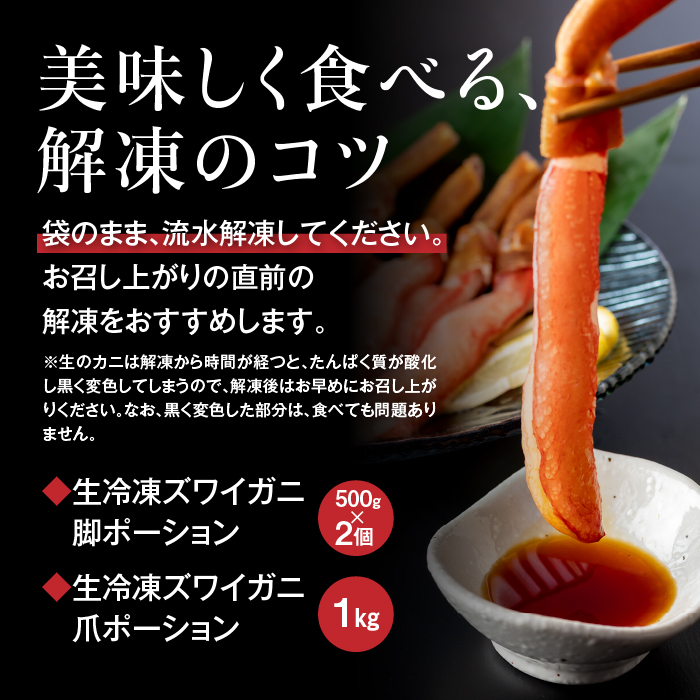 生冷凍 ずわい蟹 爪ポーション 1kg
