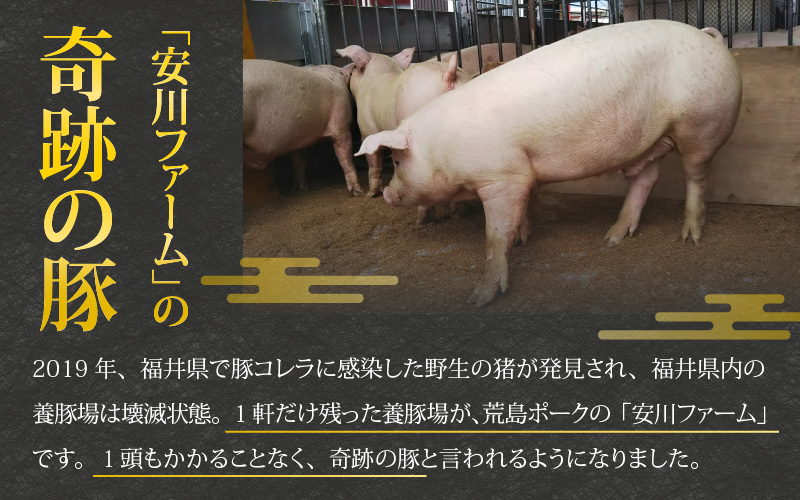 2019年福井県の養豚場で豚コレラに感染したイノシシが発見されると県内に養豚場に瞬く間に広がり、県内の豚はほとんどが豚コレラに感染し殺処分されました。その中で唯一、一頭も感染しなかった豚が安川ファームの「荒島ポーク」です。