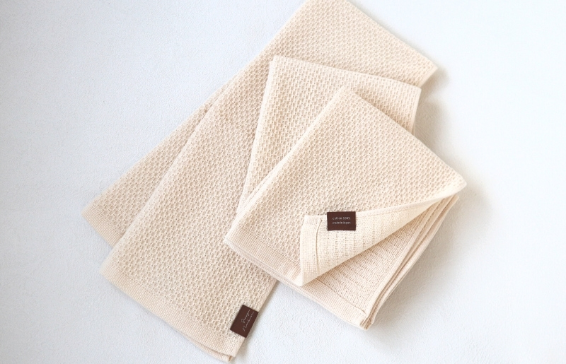 表に吸水性の良い“ハニカム織”と、裏は極限まで粗くした“ガーゼ織”。