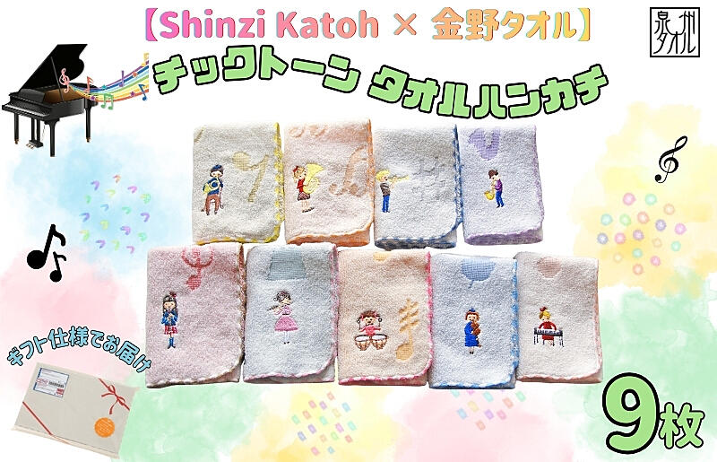 099H4319 【Shinzi Katoh × 金野タオル】 音楽シリーズ『チックトーン』タオルハンカチ 9枚セット