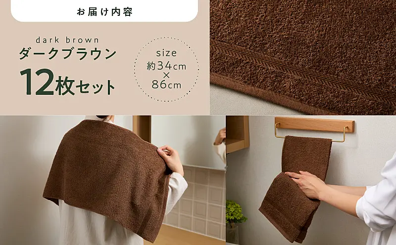 - コーマカラーフェイスタオル12枚セット(ダークブラウン)
