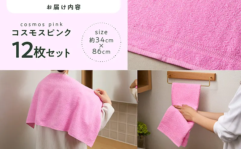 - コーマカラーフェイスタオル12枚セット(コスモスピンク)