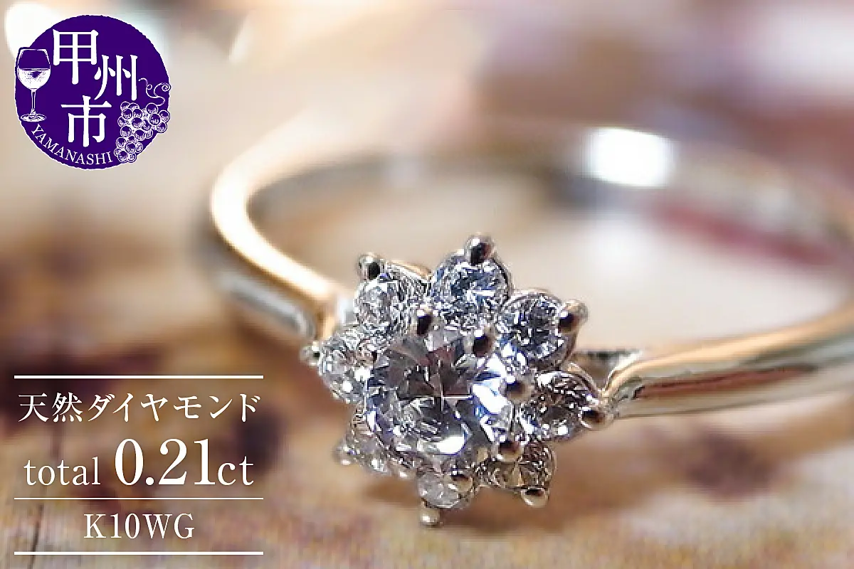 指輪 天然 ダイヤモンド 0.21ct フラワー リング SIクラス【K10WG】r-21(KRP)G64-1413