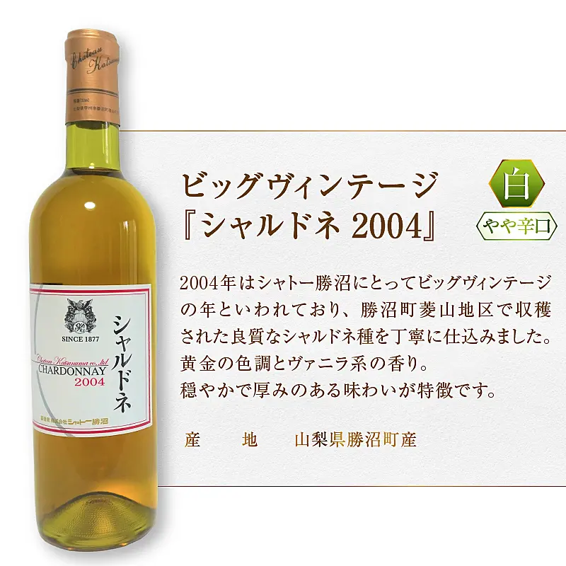 - シャトー勝沼のビッグヴィンテージ『シャルドネ2004』白 720ml×1