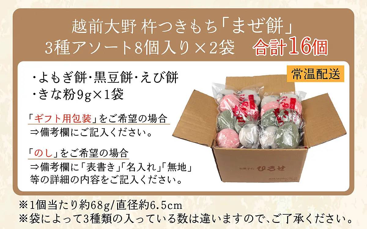 【先行予約】杵つきもち「まぜ餅」計16個 きな粉つき【※12月15日までの入金確認分は年内配送】