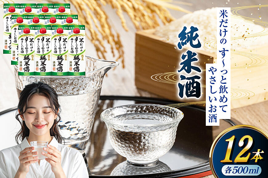 日本酒 福徳長 純米酒 米だけのす~っと飲めてやさしいお酒 500ml 紙パック 12本(1220267) [20745248]
