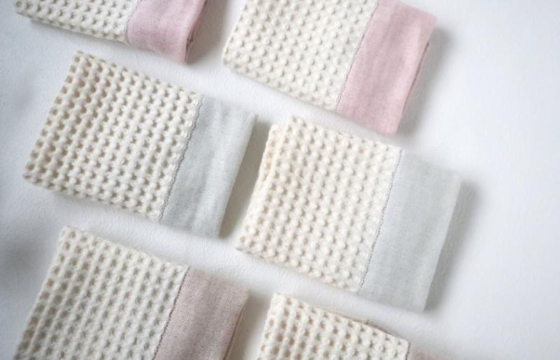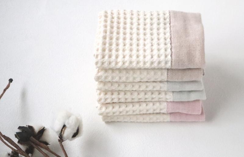 少し大き目のワッフルはふんわりとポコポコした風合いで、吸水性に優れ乾きが早いので日常使いに最適です。