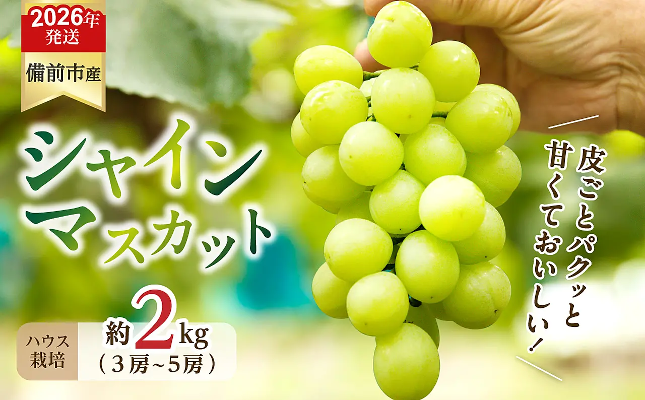 【2026年発送分 先行受付開始!】びぜん葡萄「シャインマスカット」(ハウス栽培)約2kg入(令和8年8月中旬~9月中旬頃発送)