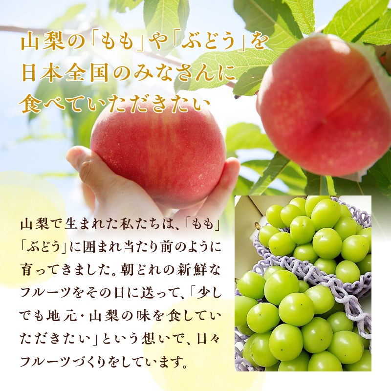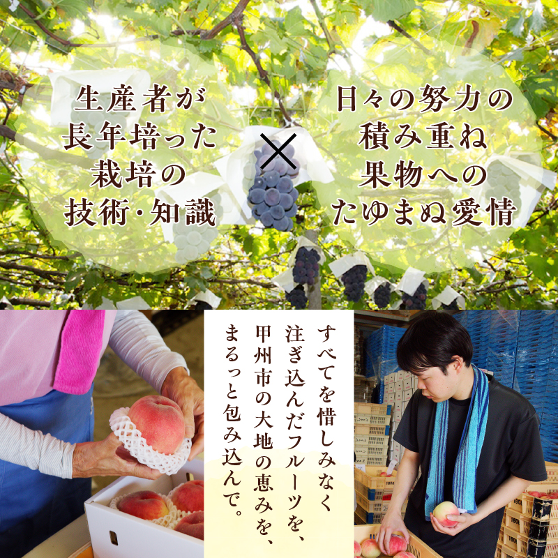 甲州市の生産者が長年培ったぶどう栽培の知識、技術を惜しみなく注ぎ込んだシャインマスカットを、産地直送でお届けいたします。
