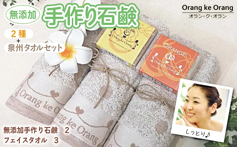 099H3747 【スピード発送】無添加手作り石鹸付泉州タオルセット 【人気のハニーとオレンジ】