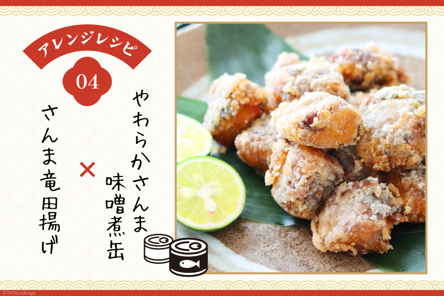 ・やわらかさんま味噌煮:気仙沼港で水揚げされた新鮮な生さんまを使用