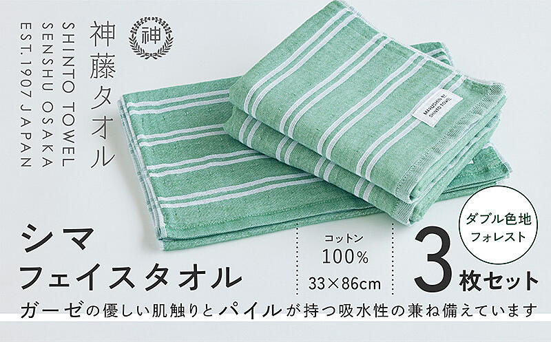 010B1788 神藤タオル「シマ・フェイスタオル」(ダブル色地/フォレスト)3枚セット