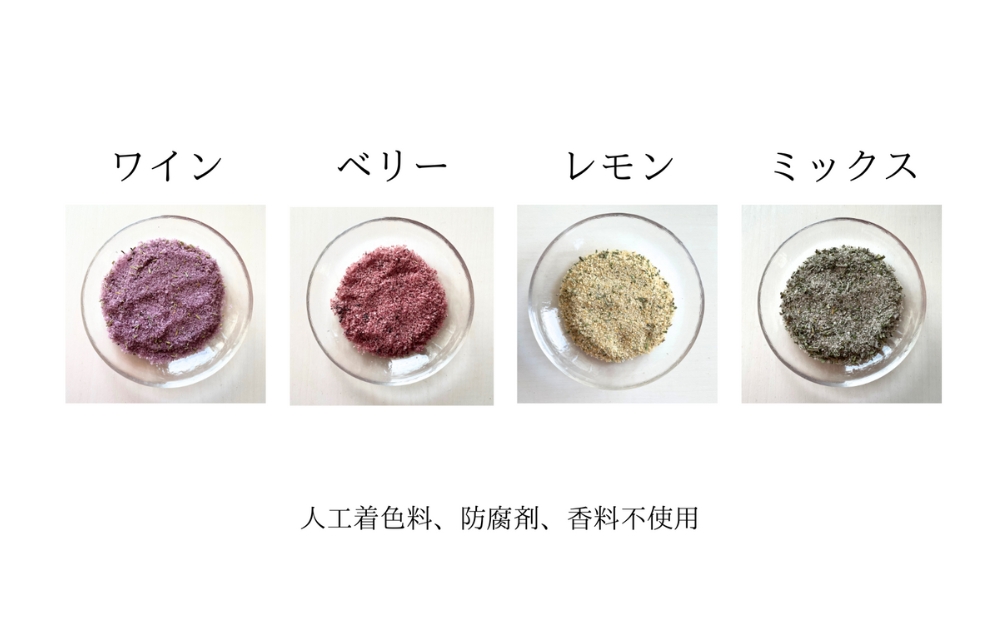 ※ワインソルトにアルコール成分は含まれておりません。合成着色料、保存料、香料は使用しておりません。
