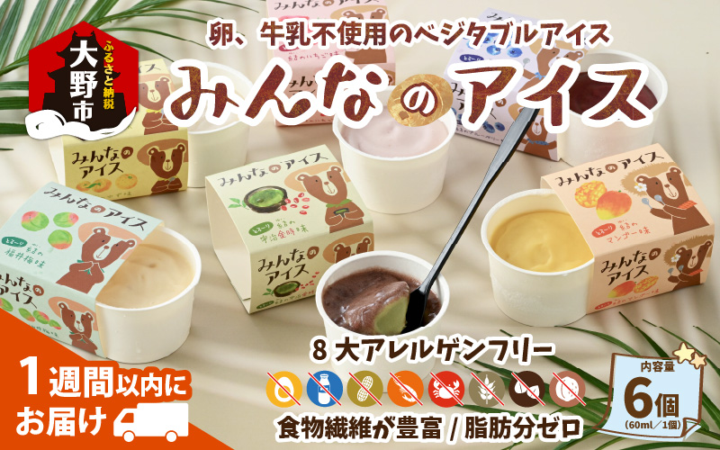 みんなのアイス6個セット( 卵・牛乳・小麦等アレルギー特定原材料8品目不使用のアイス)[A-031001]