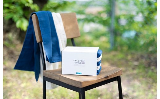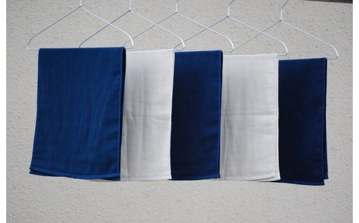 010B1153 さらっとガーゼとふんわりパイルのモノトーンタオル(ネイビーブルー3枚 キナリ2枚)