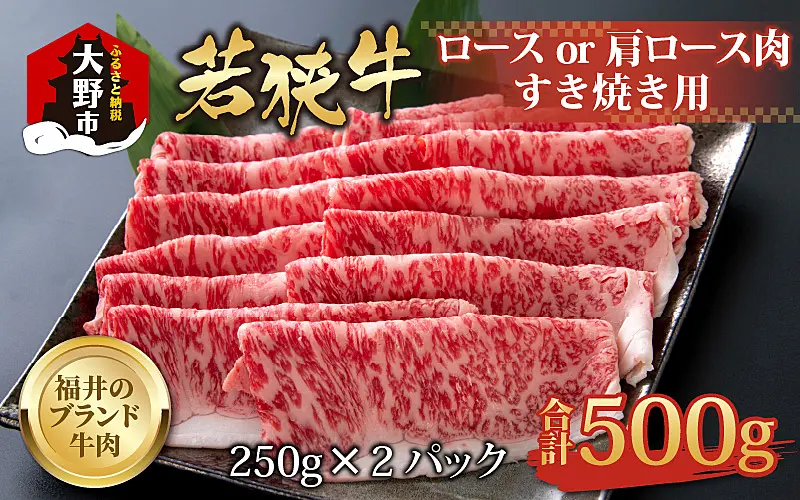 【福井のブランド牛肉】若狭牛ロースor肩ロース肉 すき焼き用 500g(250g×2パック)【4等級以上】[C-054003]