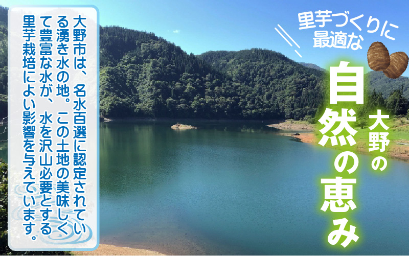 福井県奥越地方の大野市は水捌けのよい土壌と晩夏から秋にかけての大きな寒暖差によってさといもの栽培にぴったりな環境です。