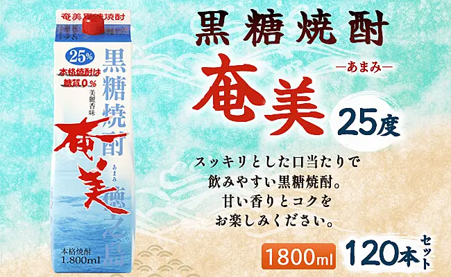 【鹿児島徳之島】黒糖焼酎 奄美 1800ml×120本セット 25度 奄美酒類 紙パック
