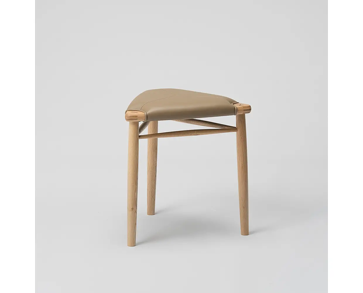 【木と暮らしの工房】H.O.スツール <樹種:ナラ/座面:本革(ブラウン)>