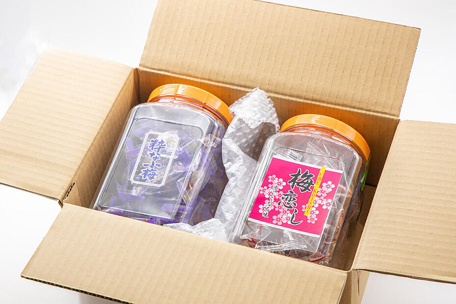 - ・粋な小梅:小梅(国産)、漬け原材料〔食塩、醸造酢、発酵調味料、かつおエキス〕/調味料(アミノ酸)、酸味料、香料、着色料(赤102)