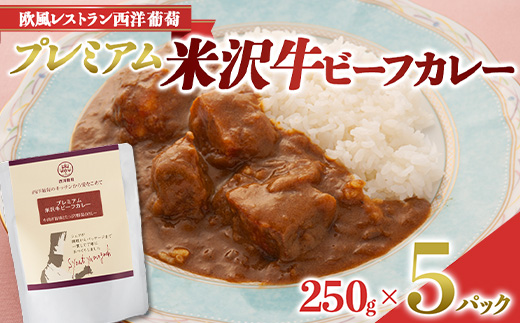 プレミアム 米沢牛ビーフカレー (250g×5パック) 『欧風レストラン 西洋葡萄』 山形県 南陽市 [1664]