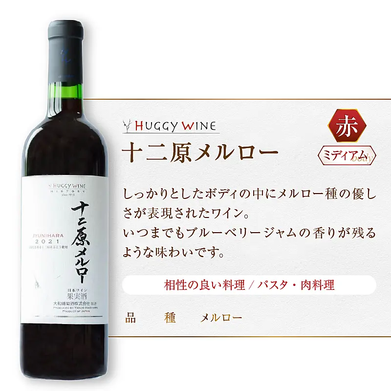特徴:しっかりとしたボディの中にメルロー種の優しさが表現されたワイン。いつまでもブルーベリージャムの香りが残るような味わい。