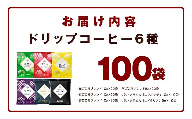 015B279 本格ドリップコーヒー 6種 100袋 工場直送 詰合せ セット