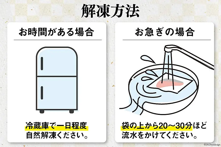 ・お時間がある場合:冷蔵庫で一日程度自然解凍ください。