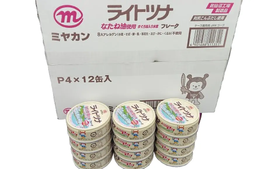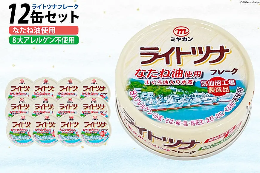 缶詰 ライトツナフレーク なたね油使用 まぐろ油入り水煮 70g ×12缶 [ミヤカン 20565669]