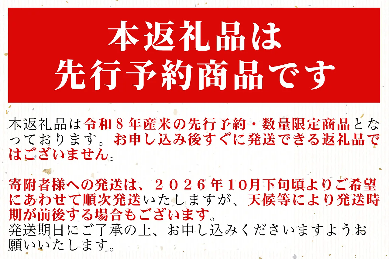 【精米年月日】都度(お申込みいただいてから精米し、発送いたします)
