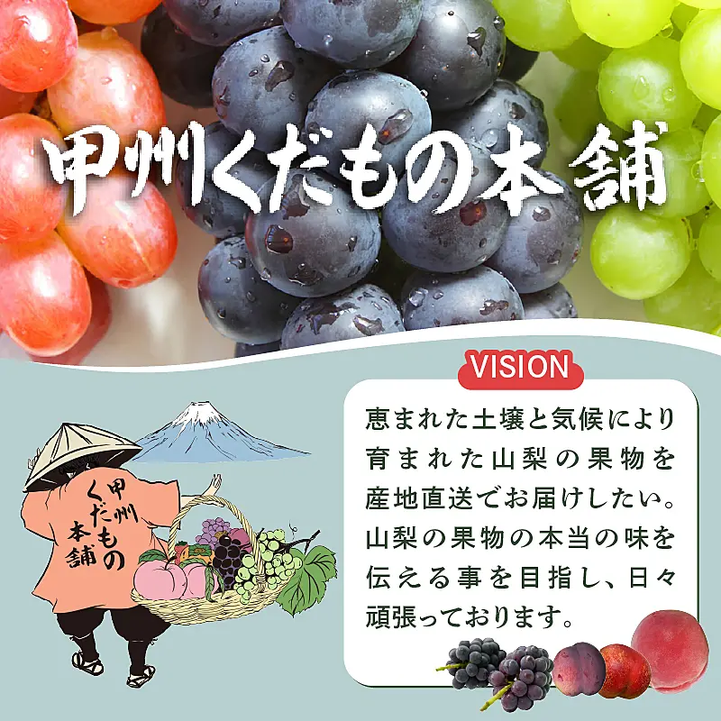 昼夜の寒暖差や扇状地という特徴を活かし、長い年月をかけて作り上げた栽培技術を使って育てた「シャインマスカット」は高品質なものばかり。「シャインマスカット」には種がなく、皮まで食べられます。また、酸味と甘味のバランスが良く、粒も大きいものが多いため食べ応え抜群です。