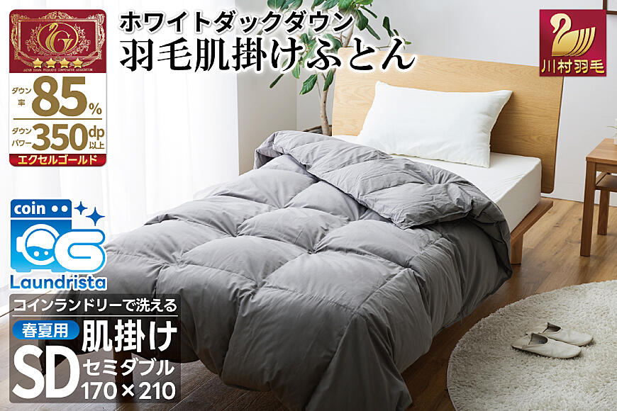 【春夏用】洗える! 羽毛 肌掛け布団 セミダブル ホワイトダックダウン 85% (無地 グレー) [20745099]