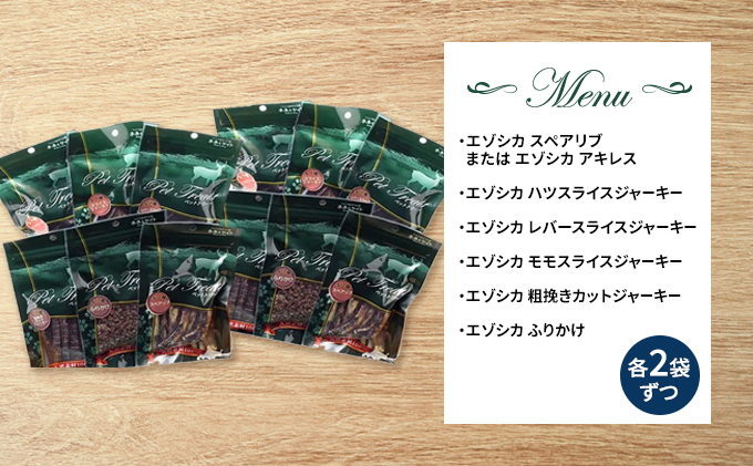 ペットの食材としても栄養価が高く注目されている鹿肉のおやつのセットです。