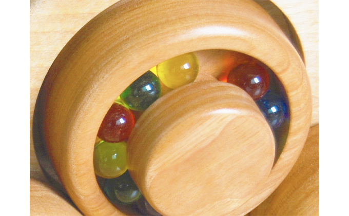 車輪を前後に動かすことで両側にある沢山のビー玉がカチカチとリズミカルに心地の良い音を響かせます。