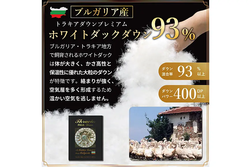 〇詰め物:ブルガリア産ホワイトダックダウン93%・スモールフェザー7%