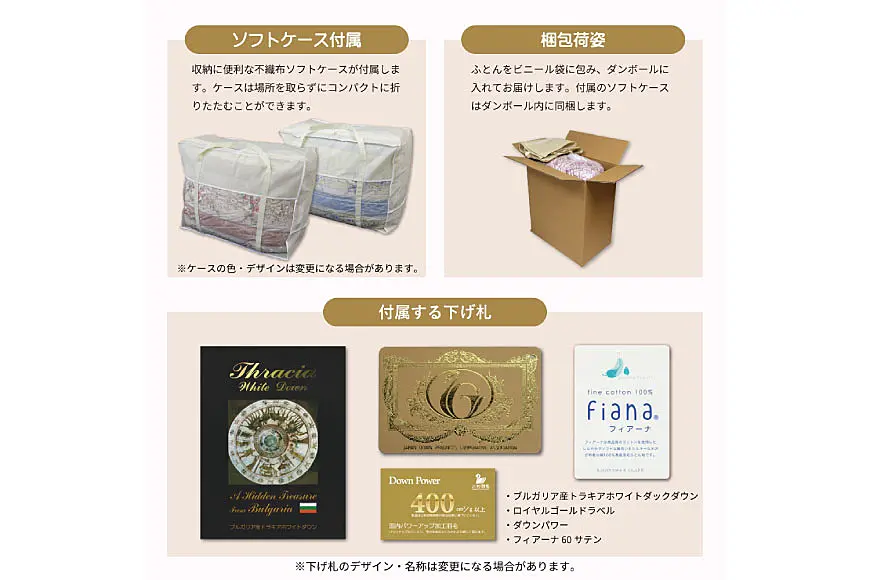 ※羽毛布団の特性上、縫い目や側生地からごく微量の羽毛が出てくることがありますが使用上問題はありません。