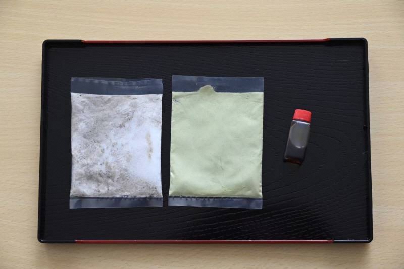 - 1人前:わらび粉(+砂糖)22g、きなこ12g、黒蜜7.5g
