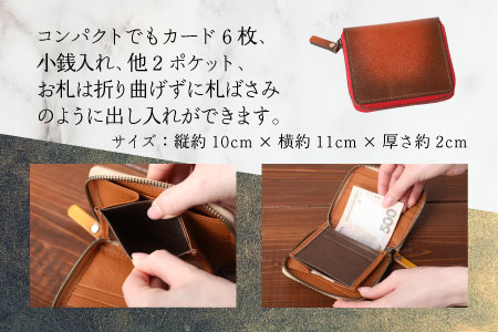 【6色から選べる】職人こだわりの手染めハーフ財布(タイプB)【ブラウン】【イニシャル名入れ対応】[J-024002_04]