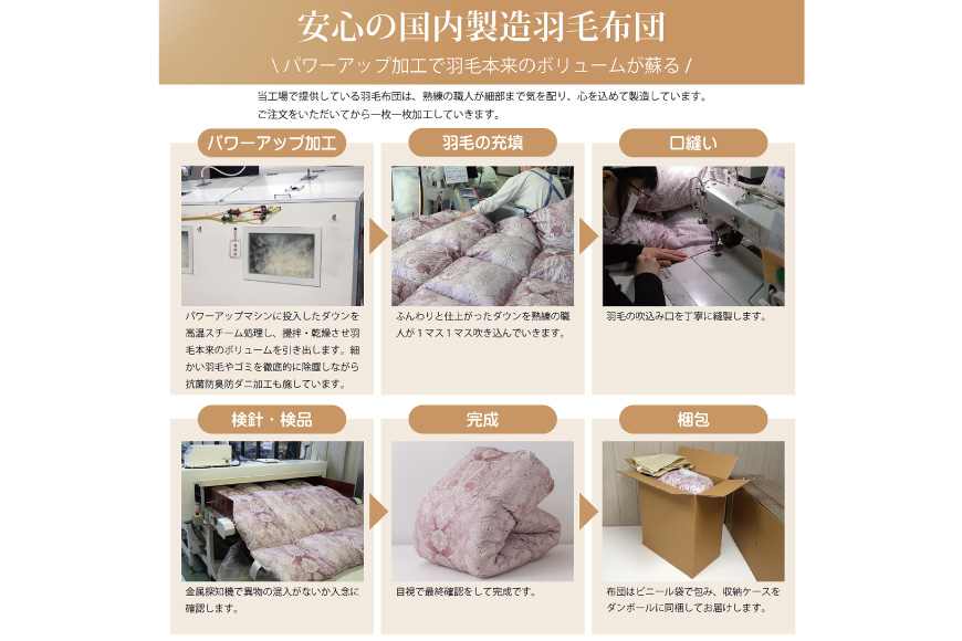 安心の日本製。できたての羽毛布団を韮崎から直送いたします。
