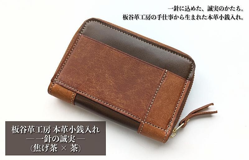 099H4025 板谷革工房 本革小銭入れ「一針の誠実」(焦げ茶×茶)