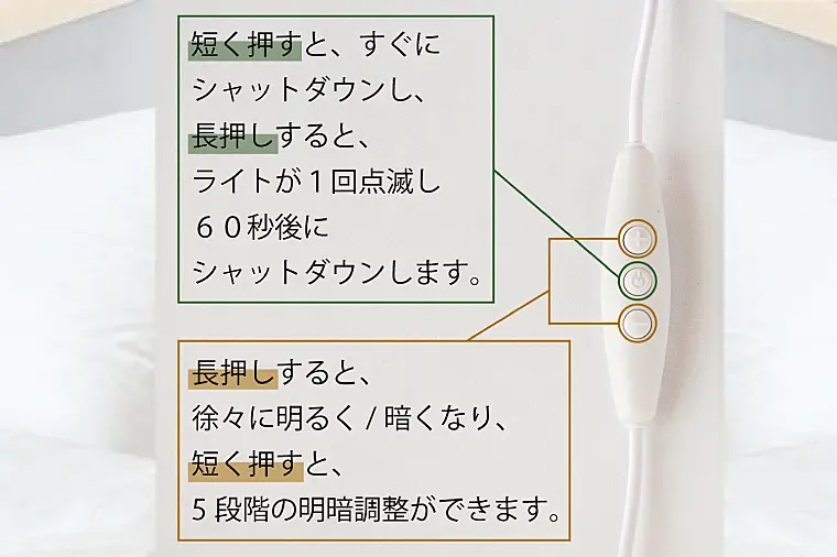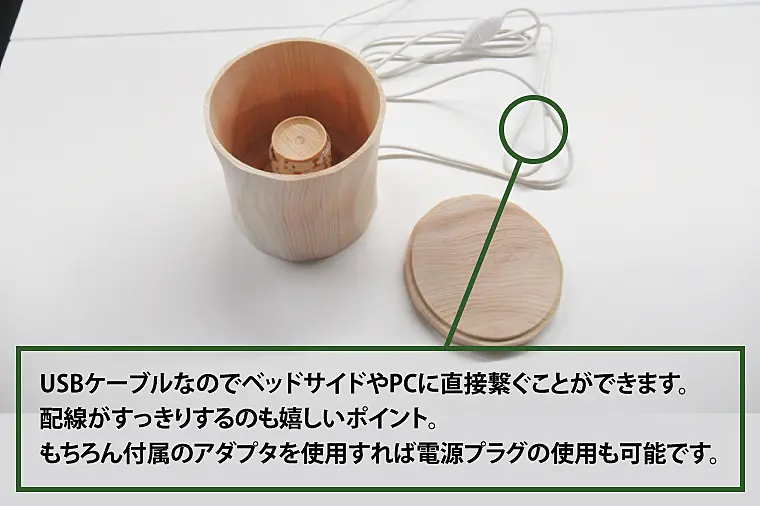 USBケーブルなのでベッドサイドやPCに直接繋ぐことができます。配線がすっきりするのも嬉しいポイント。