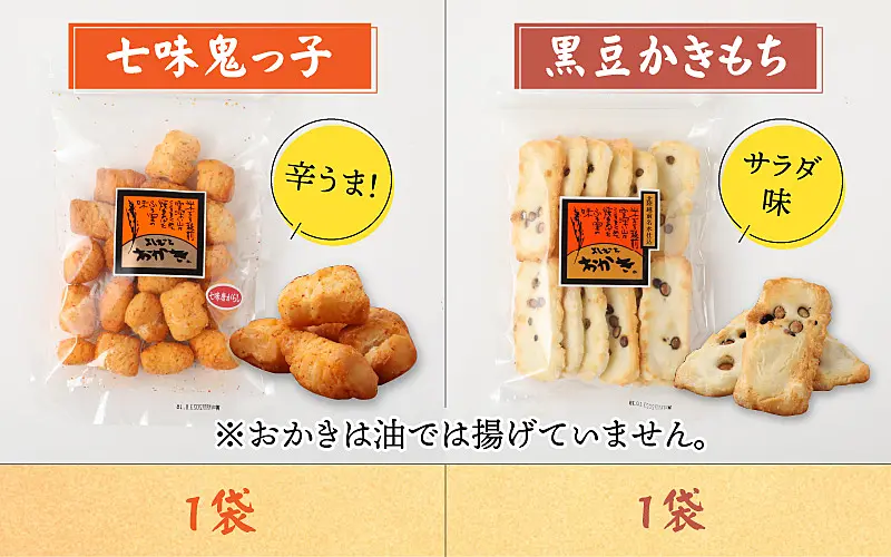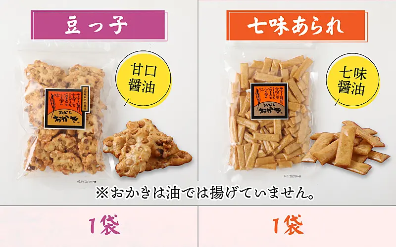 水稲もち米(福井県産100%)、植物油、食塩、七味唐辛子、たん白加水分解物、酵母エキス、デキストリン、香辛料、調味料(アミノ酸等)