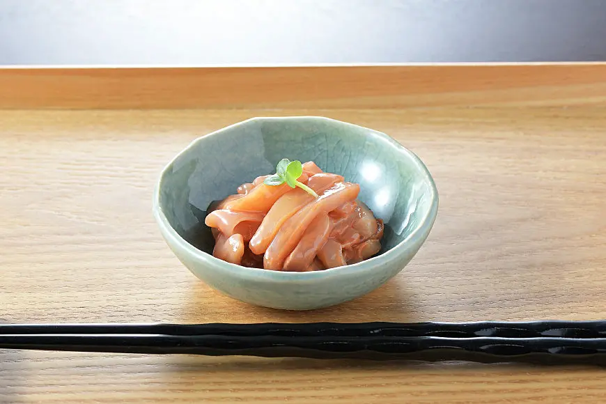 小野万の伝統の技で、じっくり仕込んだ、まろやかでコクのある味の塩辛です。柔らかいいかを使用しており、口の中でとろけるような食感をお楽しみいただけます。