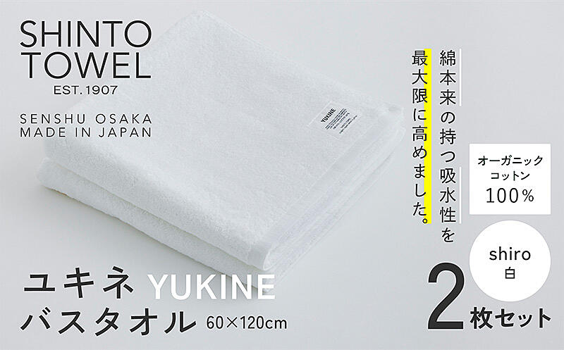 099H3987 SHINTO TOWEL「ユキネ・バスタオル」shiro(白)2枚セット オーガニックコットン100%