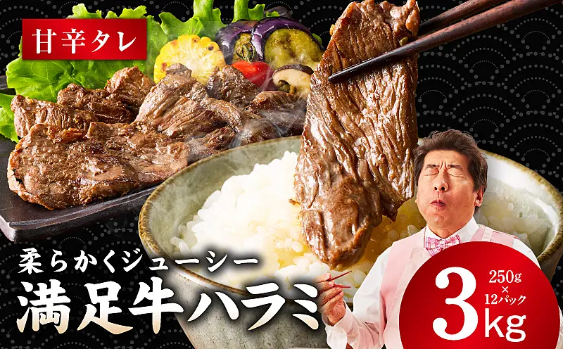 G3415 【満足牛ハラミ】甘辛タレ漬け 合計3kg 【味付け 小分け 簡単調理 BBQ 牛肉 250g×12P】