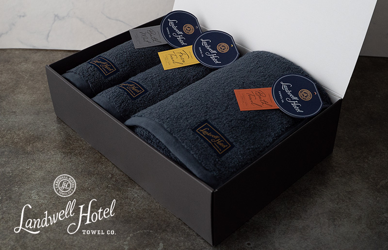 099H3250 Landwell Hotel ギフト 贈り物セット バスタオル フェイスタオル バスマット ネイビー